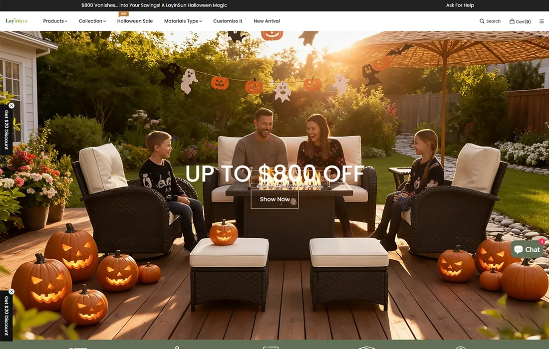 为该家具品牌提供网站搭建、素材拍摄、网页制作、SEO 优化、Shopify 插件定制开发及品牌视频内容产出等综合服务。2024 年 4 月从 0 开始合作,三个月内快速达到月销 20 万美元,目前稳定增长。